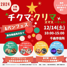 開催場所 | 12/6(土)10:00-15:00 千曲市役所ガレリア&こもれびテラス&体育館通路 回遊式で今回のイベントは参加いただけます。出口は複数あり、空いているで入口からお入りください。 |